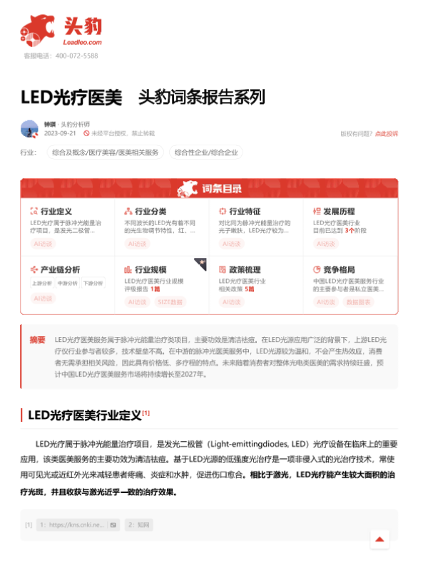 【头豹研究院】【20240116】LED光疗医美 头豹词条报告系列-12页