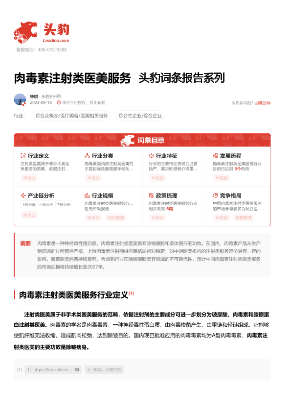 【头豹研究院】【20240115】肉毒素注射类医美服务 头豹词条报告系列-13页