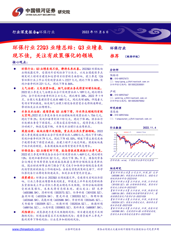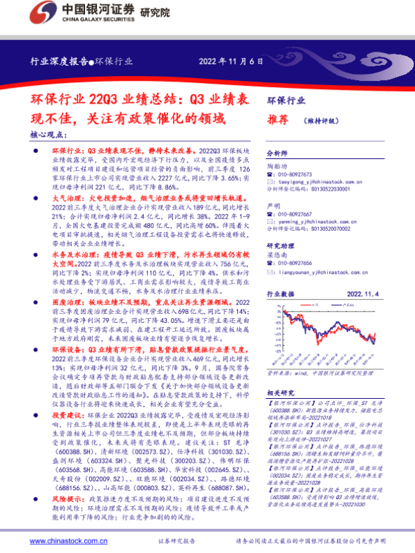 【银河证券】【20221106】环保行业22Q3业绩总结:Q3业绩表现不佳,关注有政策催化的领域-29页