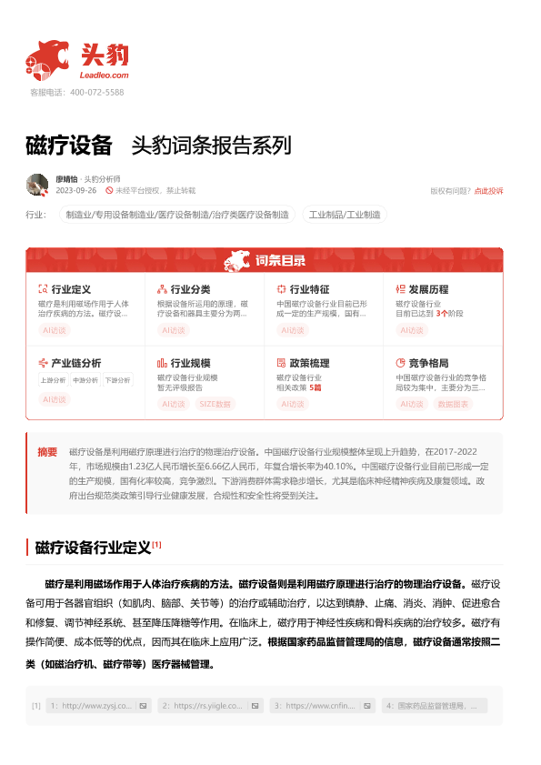 【头豹研究院】【20240117】磁疗设备 头豹词条报告系列-16页