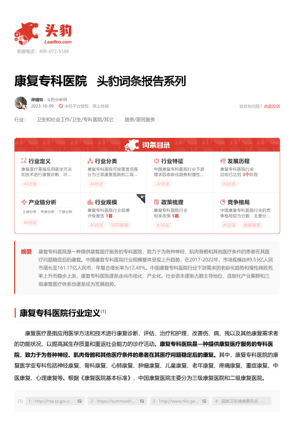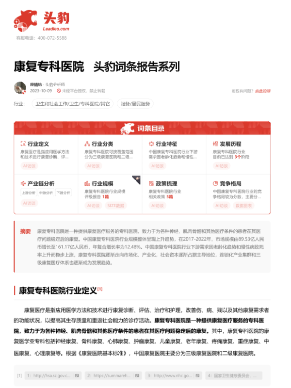 【头豹研究院】【20240119】康复专科医院 头豹词条报告系列-16页