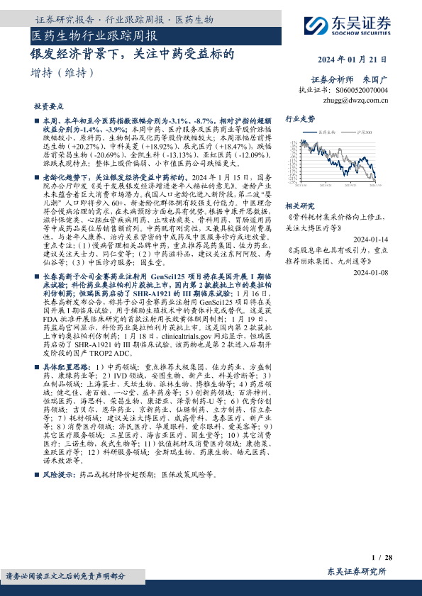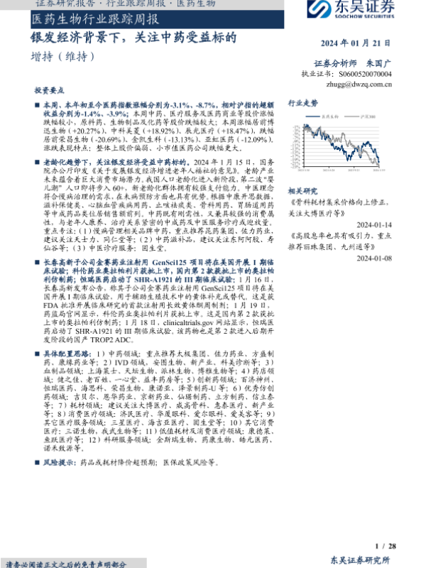 【东吴证券】【20240121】医药生物行业跟踪周报:银发经济背景下,关注中药受益标的-28页