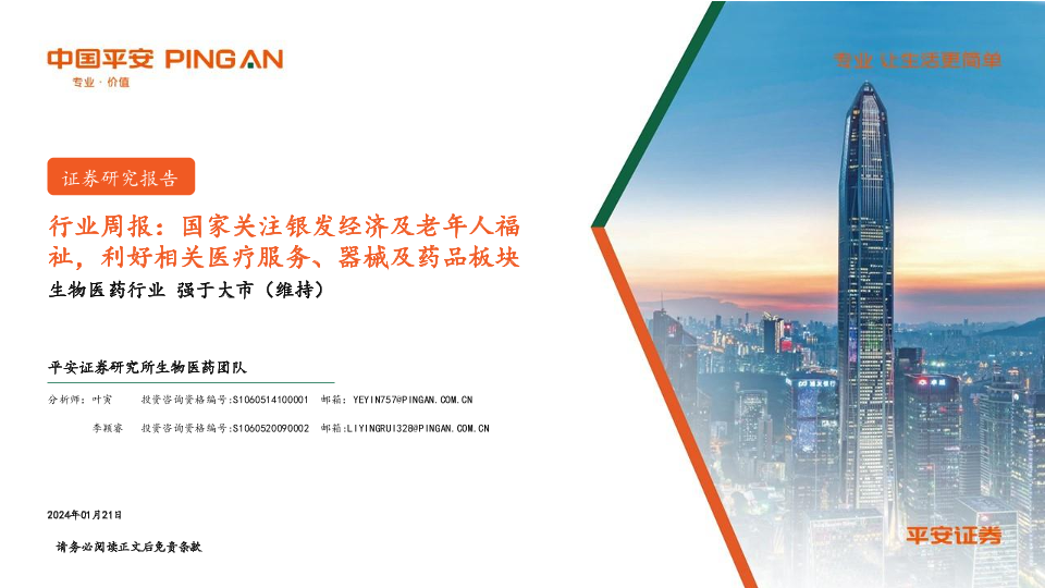 【平安证券】【20240121】生物医药行业周报:国家关注银发经济及老年人福祉-14页