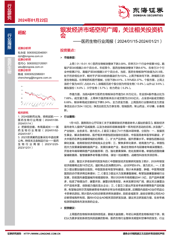 【东海证券】【20240122】医药生物行业周报:银发经济市场空间广阔,关注相关投资机会-15页