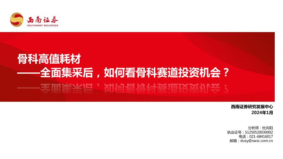 【西南证券】【202401】骨科高值耗材:全面集采后,如何看骨科赛道投资机会?-37页