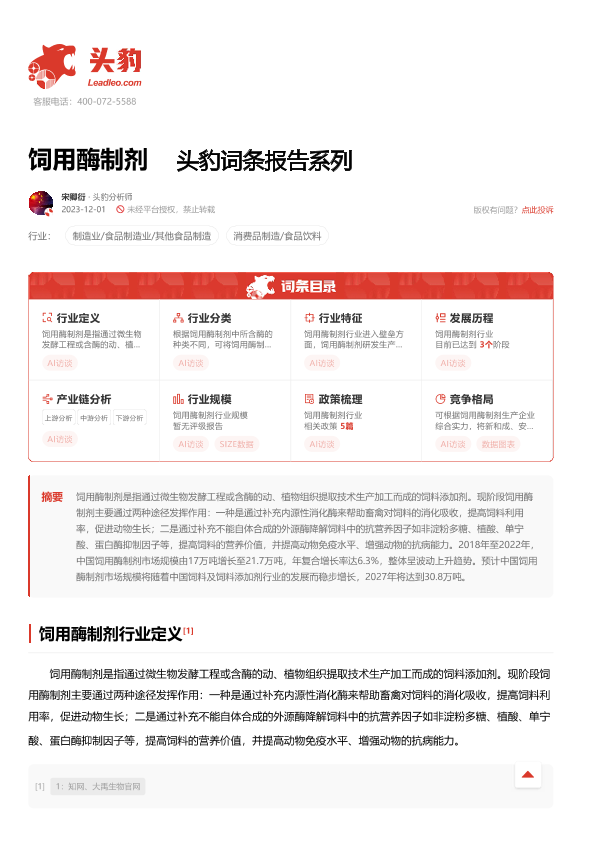 【头豹研究院】【20240126】饲用酶制剂 头豹词条报告系列-17页