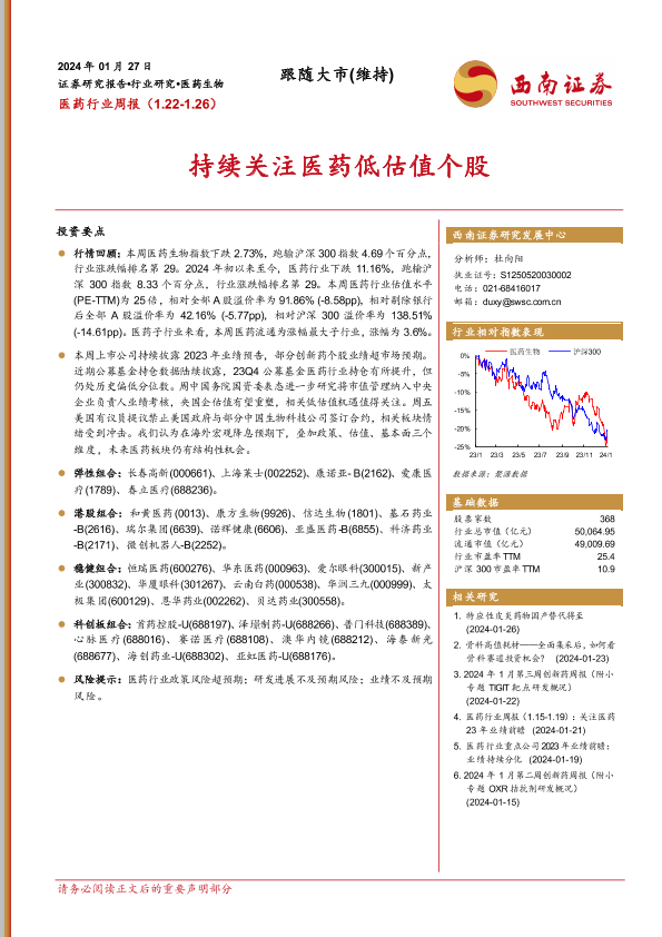 【西南证券】【20240127】医药行业周报:持续关注医药低估值个股-34页