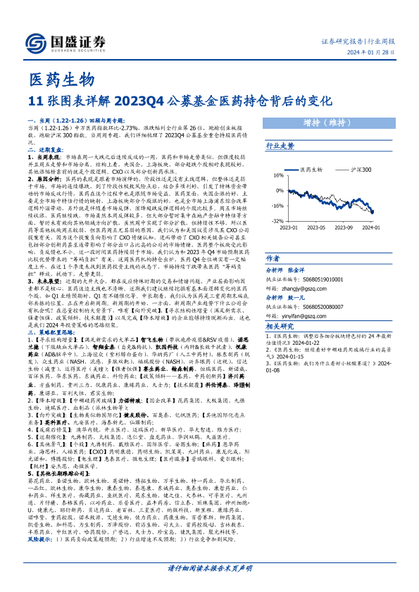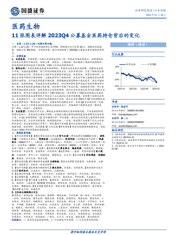 【国盛证券】【20240128】医药生物行业周报:11张图表详解2023Q4公募基金医药持仓背后的变化-40页