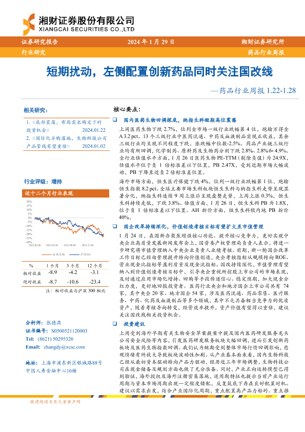 【湘财证券】【20240129】药品行业周报:短期扰动,左侧配置创新药品同时关注国改线-13页