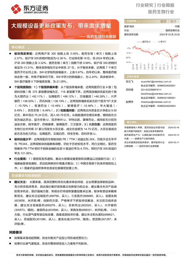 【东方证券】【20240324】医药生物行业周报:大规模设备更新政策发布,带来需求增量-11页
