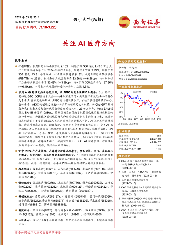 【西南证券】【20240323】医药行业周报:关注AI医疗方向-35页