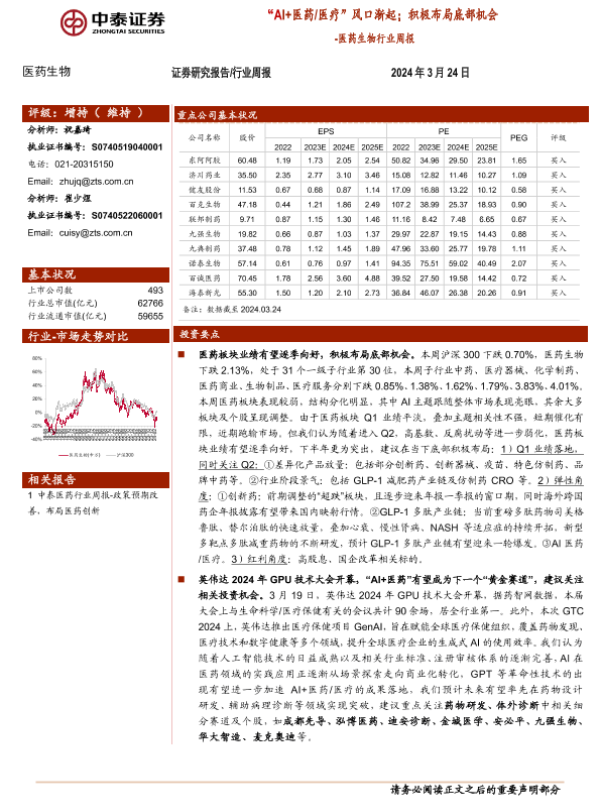 【中泰证券】【20240324】医药生物行业周报:“AI+医药 医疗”风口渐起;积极布局底部机会-10页