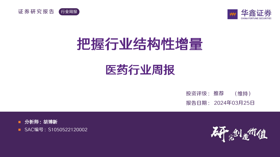 【华鑫证券】【20240325】医药行业周报:把握行业结构性增量-36页