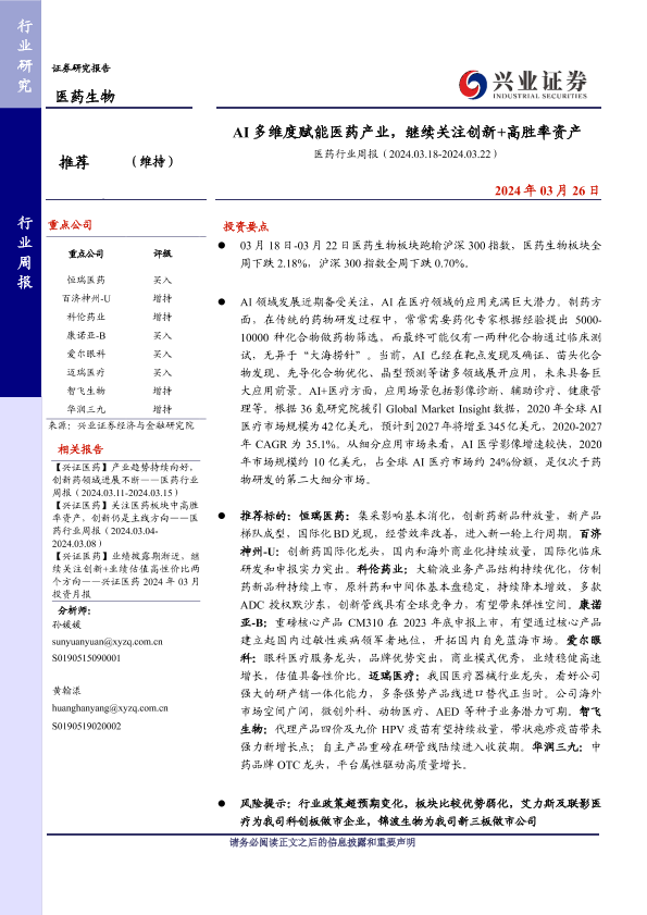 【兴业证券】【20240326】AI多维度赋能医药产业,继续关注创新+高胜率资产-16页