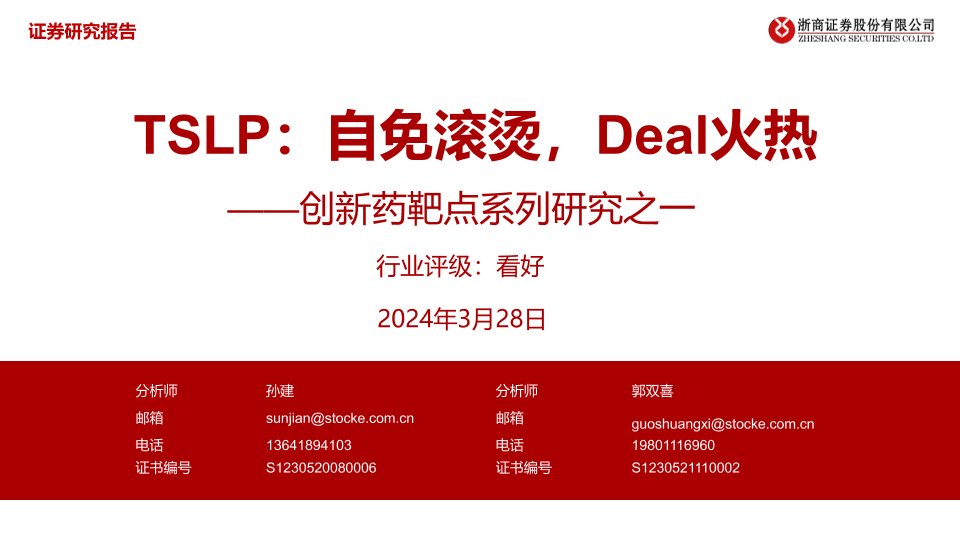 【浙商证券】【20240328】创新药靶点系列研究之一:TSLP:自免滚烫,Deal火热-23页