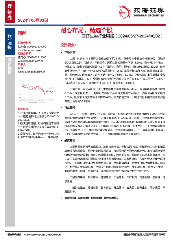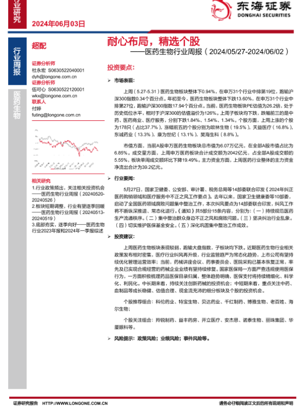 【东海证券】【20240603】医药生物行业周报:耐心布局,精选个股-12页