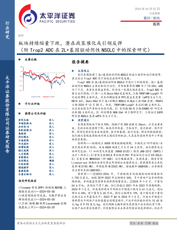 【太平洋证券】【20240602】医药行业周报:板块持续缩量下跌,潜在政策催化或引领反弹-22页