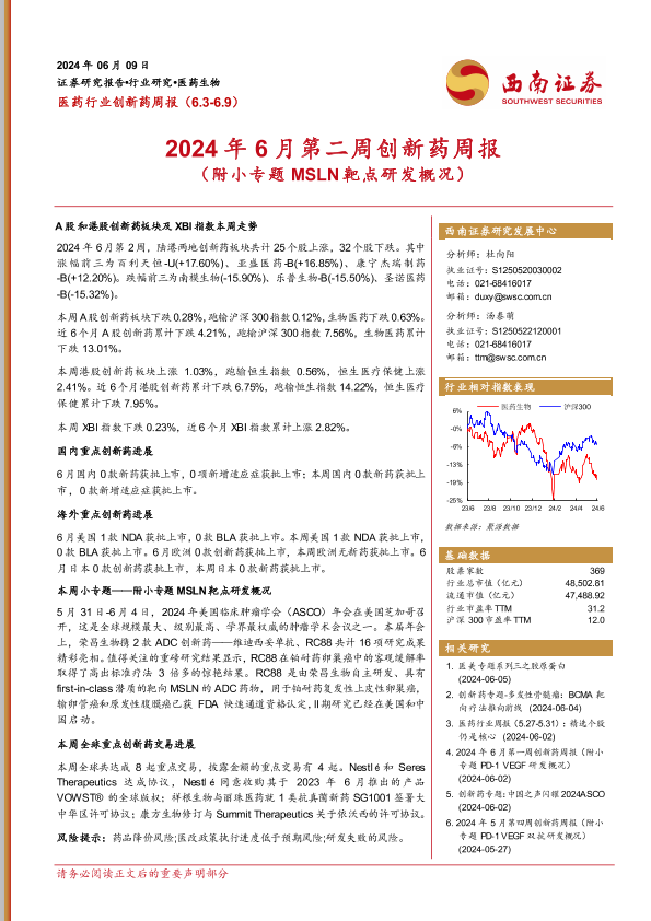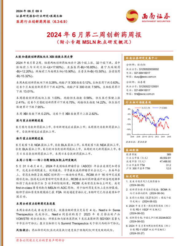 【西南证券】【20240609】2024年6月第二周创新药周报-24页