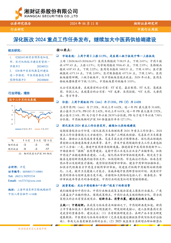【湘财证券】【20240611】深化医改2024重点工作任务发布,继续加大中医药供给端建设-12页