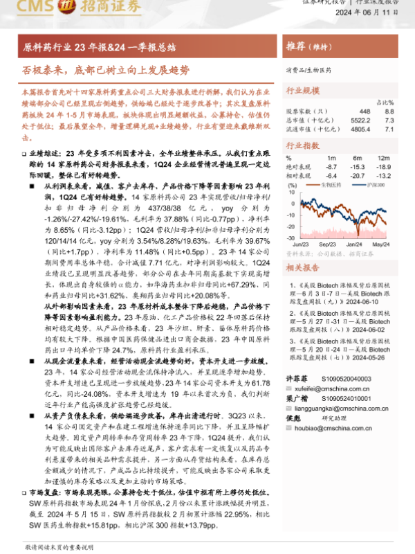 业绩综述 原料药行业 市场表现 投资策略 财务分析