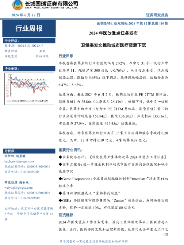【长城国瑞证券】【20240612】2024年医改重点任务发布 卫健委发文推动城市医疗资源下沉-22页