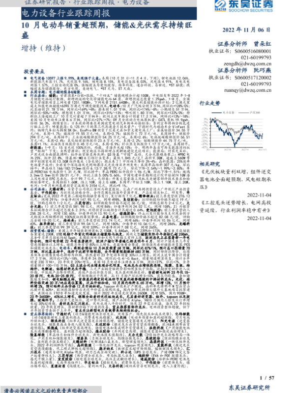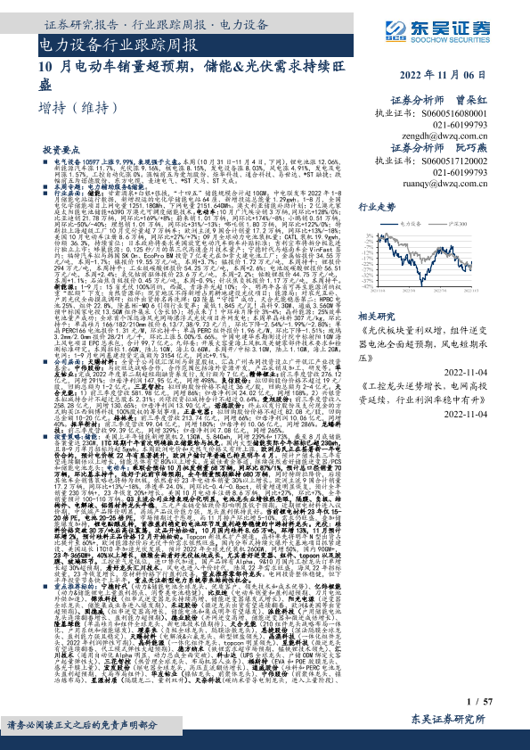 【东吴证券】【20221106】电力设备行业跟踪周报:10月电动车销量超预期,储能&光伏需求持续旺盛-57页