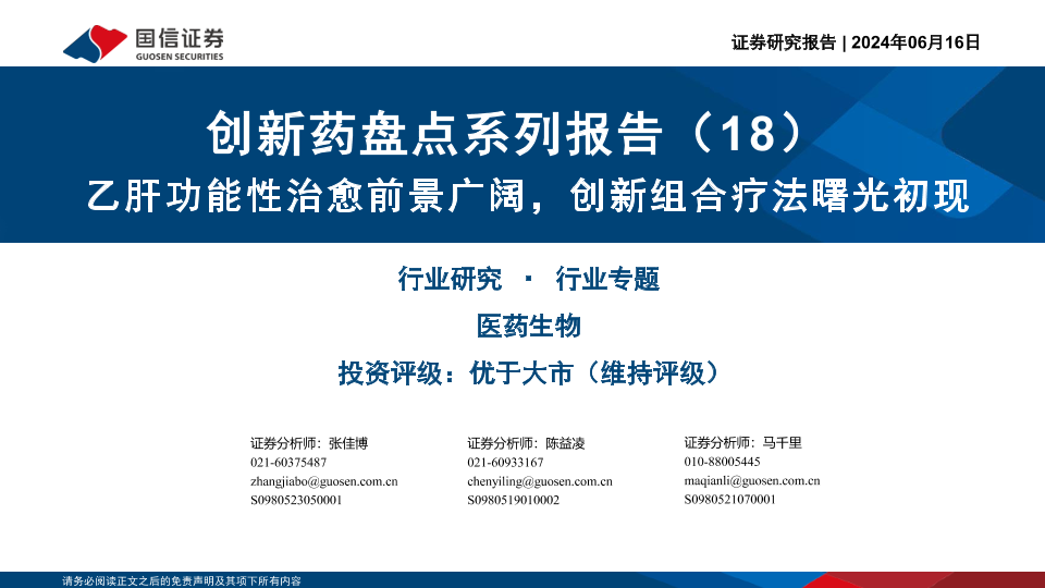 【国信证券】【20240616】创新药盘点系列报告:乙肝功能性治愈前景广阔,创新组合疗法曙光初现-44页