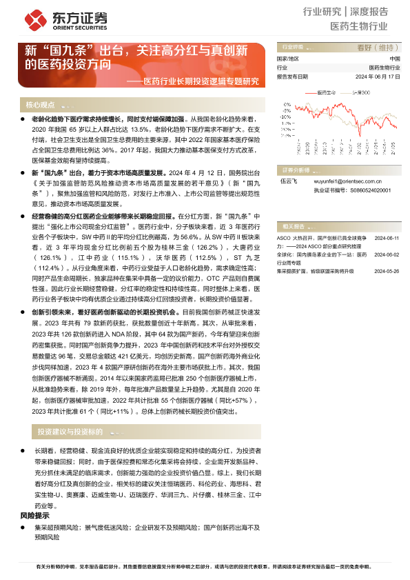 【东方证券】【20240617】医药行业长期投资逻辑专题研究:新“国九条”出台,关注高分红与真创新的医药投资方向-28页