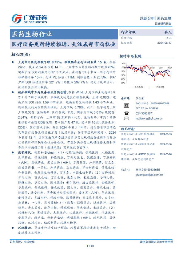 医疗设备 医药生物 投资建议 行业分析 风险提示