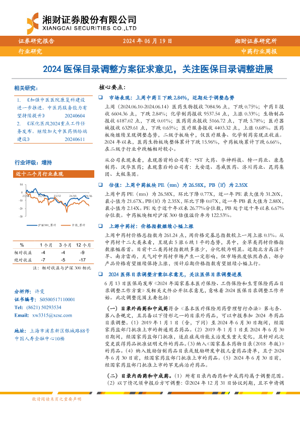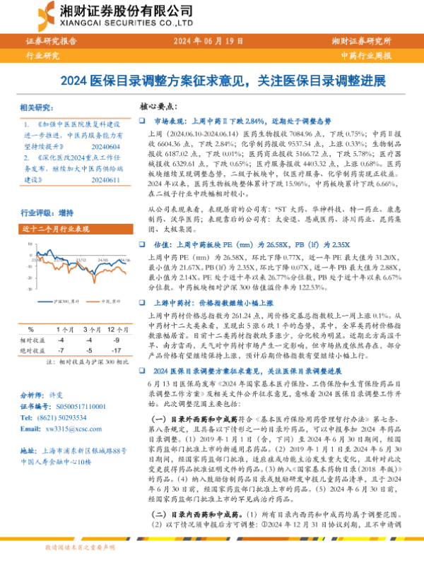 【湘财证券】【20240619】2024医保目录调整方案征求意见,关注医保目录调整进展-12页