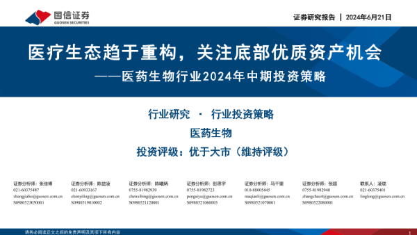 【国信证券】【20240621】医药生物行业2024年中期投资策略:医疗生态趋于重构,关注底部优质资产机会-104页