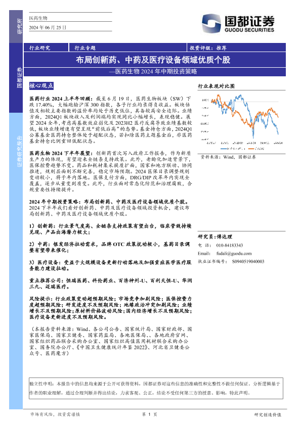 【国都证券】【20240625】医药生物2024年中期投资策略:布局创新药、中药及医疗设备领域优质个股-27页