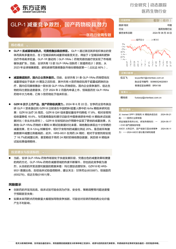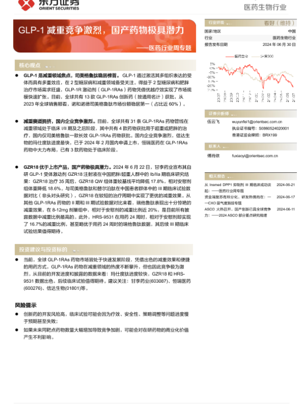 【东方证券】【20240630】GLP-1减重竞争激烈,国产药物极具潜力-12页