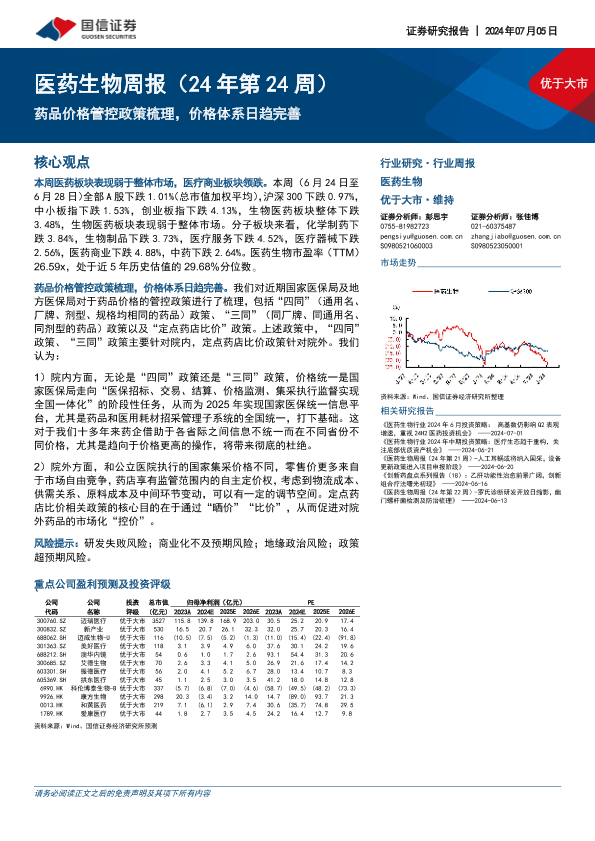 【国信证券】【20240705】医药生物行业周报:药品价格管控政策梳理,价格体系日趋完善-19页