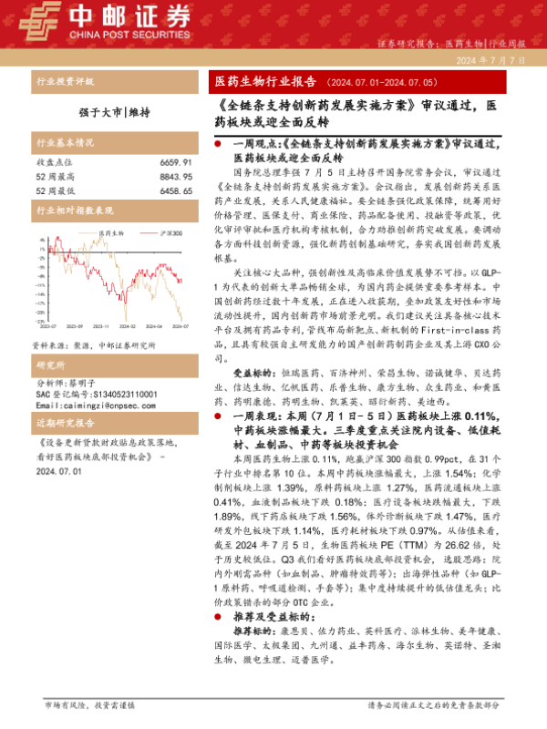 【中邮证券】【20240707】全链条支持创新药发展实施方案审议通过,医药板块或迎全面反转-18页