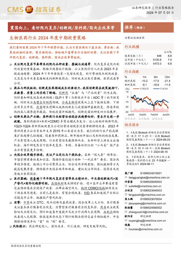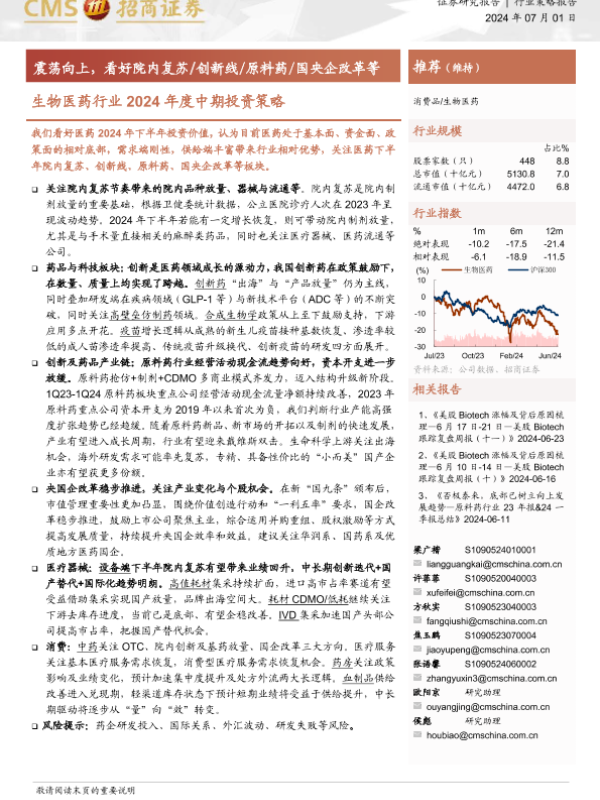 创新药 原料药 国央企改革 生物医药 院内复苏