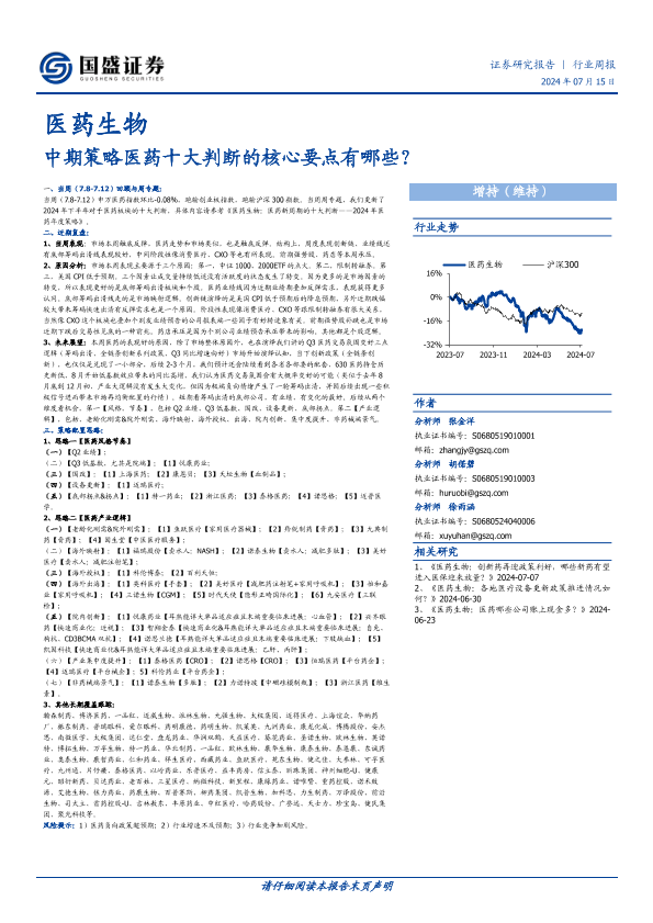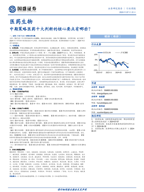 【国盛证券】【20240715】医药生物行业周报:中期策略医药十大判断的核心要点有哪些?-42页