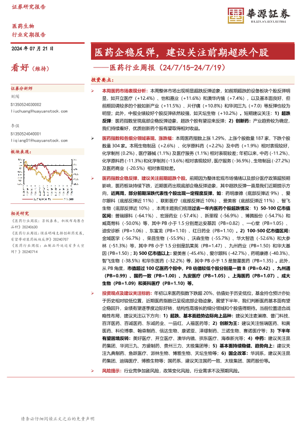 【华源证券】【20240721】医药行业周报:医药企稳反弹,建议关注前期超跌个股-13页