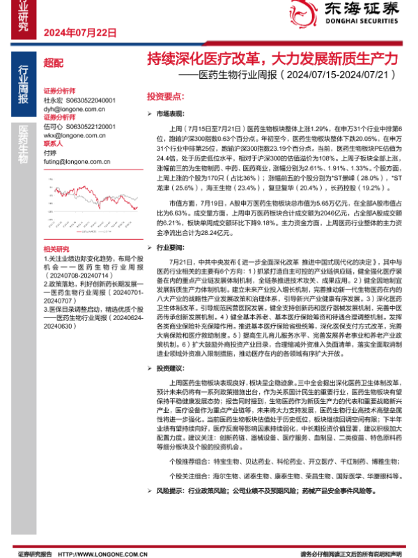 【东海证券】【20240722】持续深化医疗改革,大力发展新质生产力-12页