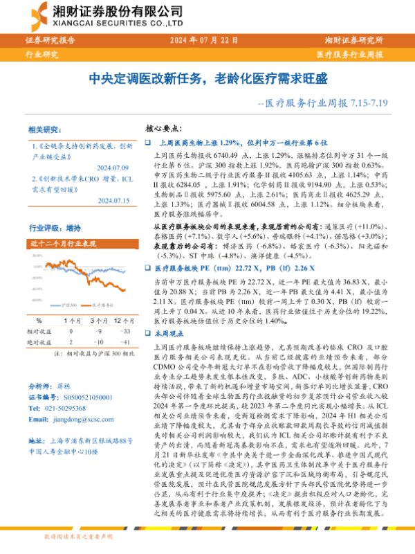 【湘财证券】【20240722】中央定调医改新任务,老龄化医疗需求旺盛-10页