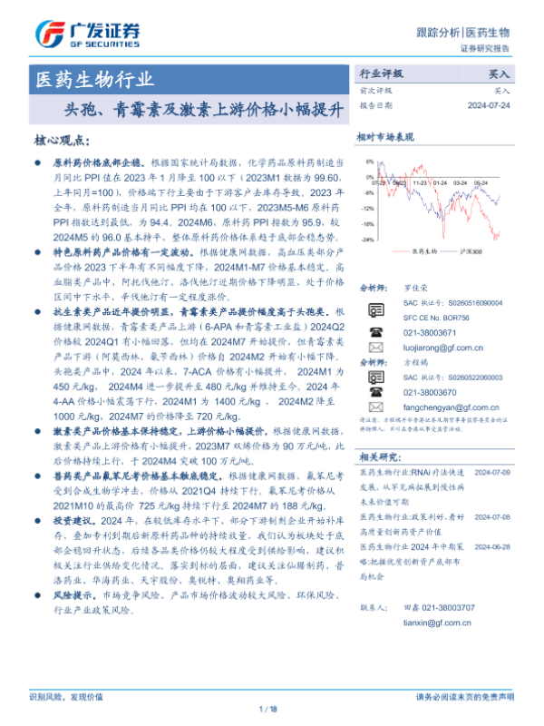 【广发证券】【20240724】医药生物行业跟踪分析:头孢、青霉素及激素上游价格小幅提升-18页