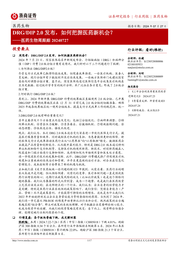 【浙商证券】【20240727】DRG DIP 2.0发布,如何把握医药新机会?-17页