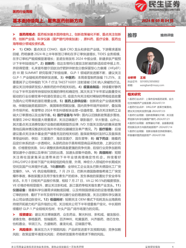 【民生证券】【20240804】医药行业周报:基本面持续向上,聚焦医药创新方向-23页