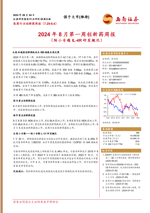 A股港股走势 IL-4R研发 XBI指数 创新药 医药生物