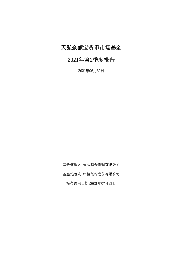 【天弘基金管理有限公司】【20210721】2021年第2季度天弘余额宝货币市场基金报告-12页
