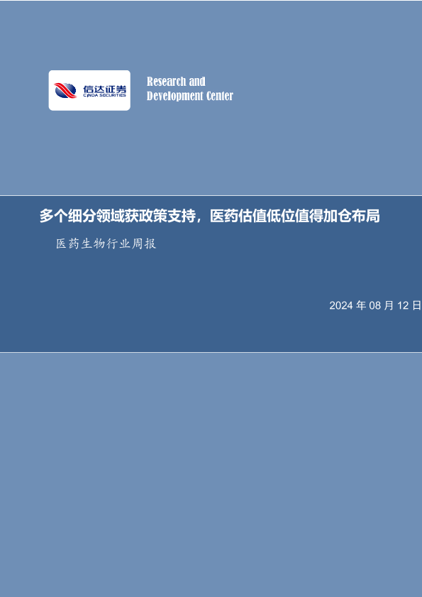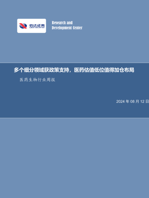 【信达证券】【20240812】多个细分领域获政策支持,医药估值低位值得加仓布局-14页
