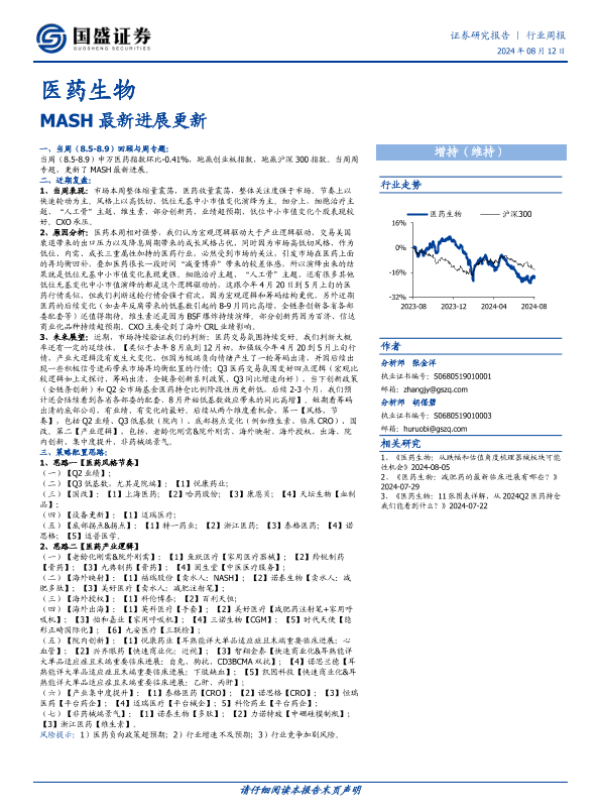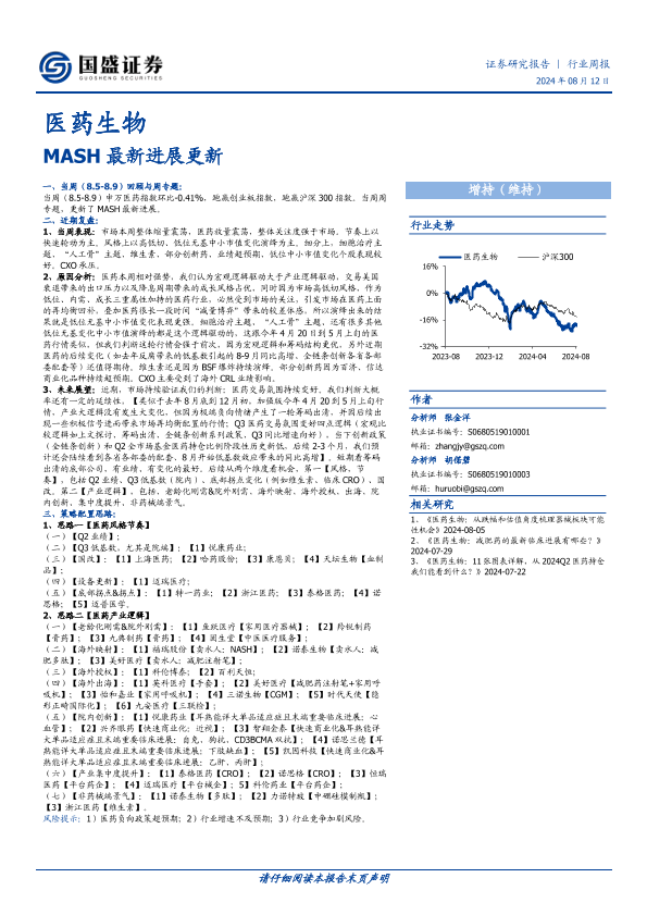 【国盛证券】【20240812】医药生物行业周报:MASH最新进展更新-33页
