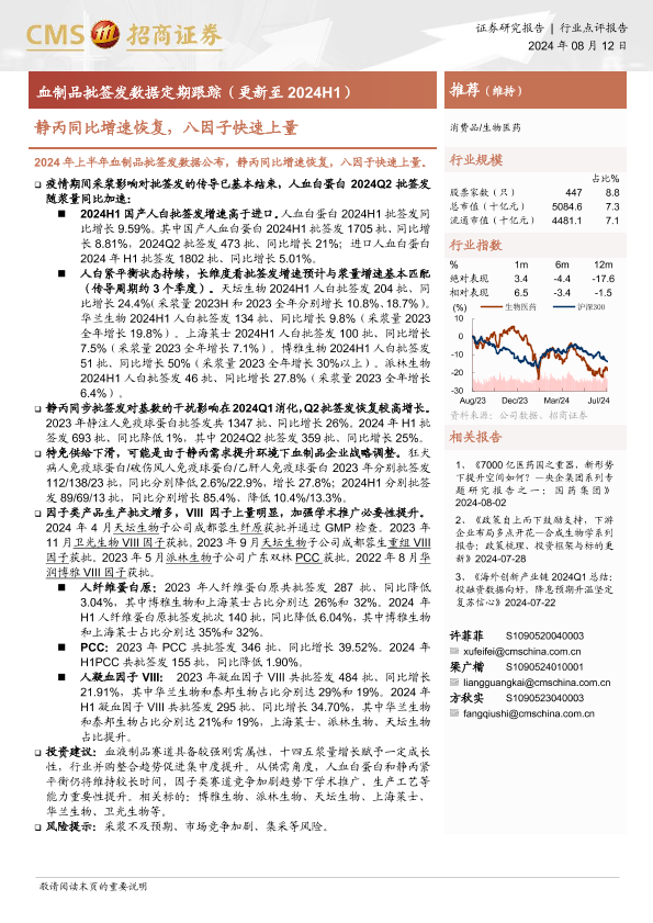 【海通证券】【20240812】血制品批签发数据定期跟踪(更新至2024H1):静丙同比增速恢复,八因子快速上量-13页