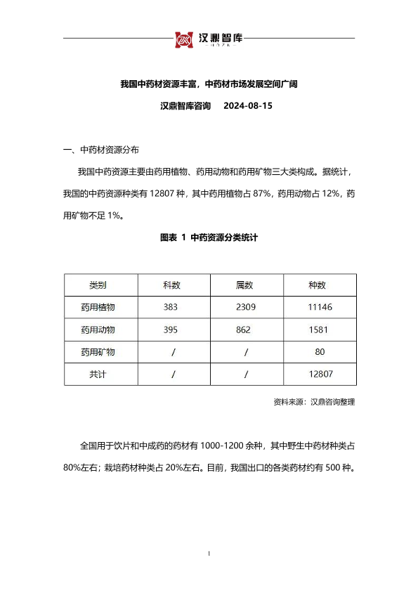 【汉鼎智库咨询】【20240815】我国中药材资源丰富,中药材市场发展空间广阔-14页
