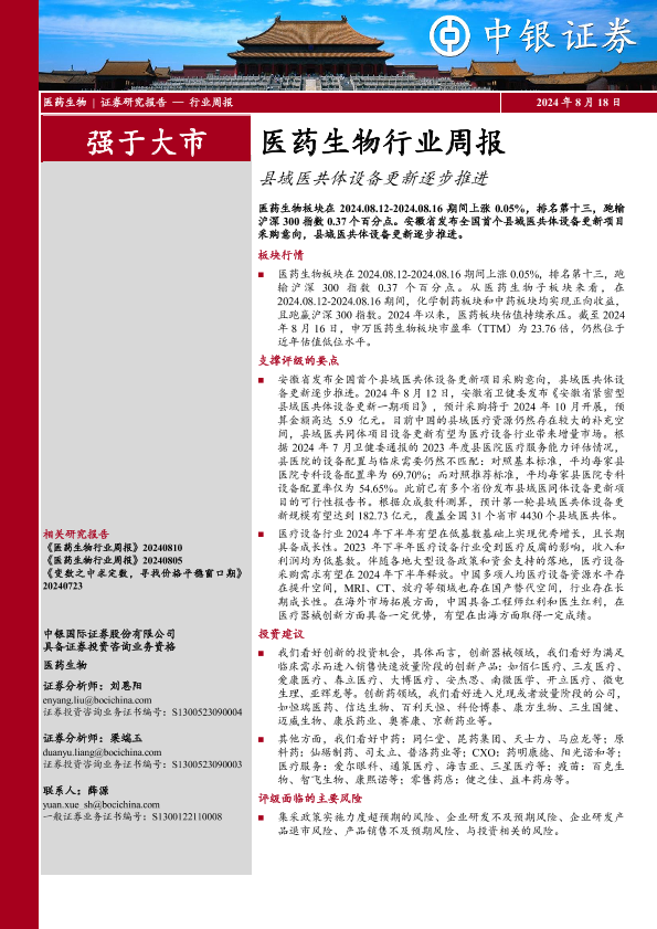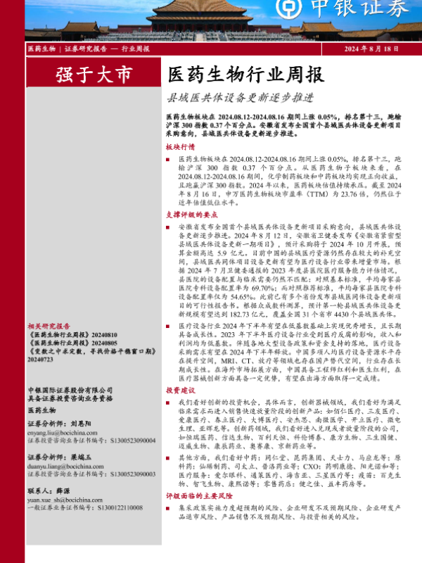 【中银证券】【20240818】医药生物行业周报:县域医共体设备更新逐步推进-10页